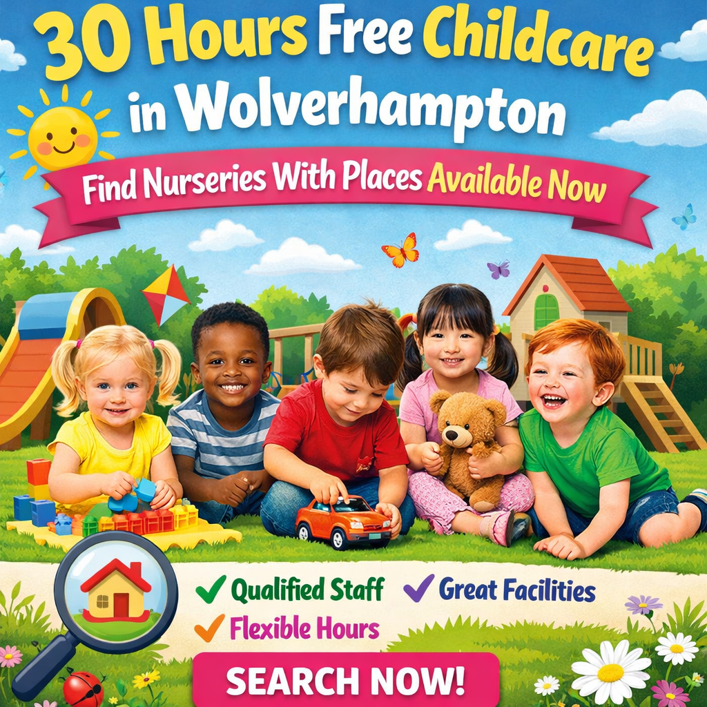 - 30 Hours Free Childcare in Wolverhampton Explained: https://www.blog.bookallcare.com/en/30-hours-free-childcare-in-wolverhampton-find-nurseries-with-places-available-now