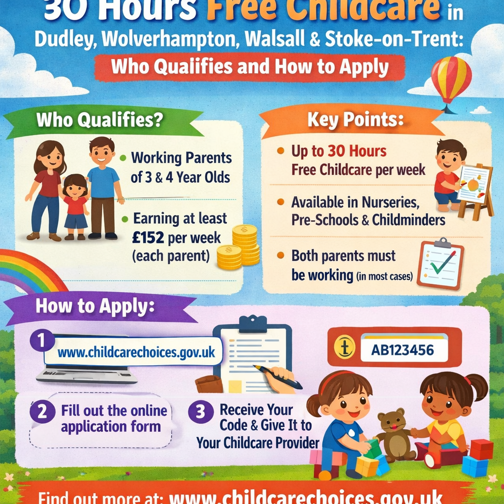 Stoke-on-TrentDudleyWalsallWolverhampton30 hours free childcarefunded childcareWest Midlandshow-to30 Hours Free Childcare in Dudley, Wolverhampton, Walsall & Stoke-on-Trent: Who Qualifies and How to Apply